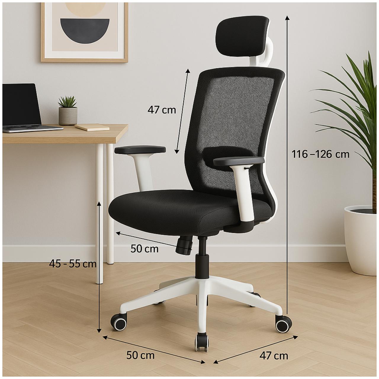 Modelo: Cadeira Executiva Ergonômica com Encosto em Tela e Base Branca