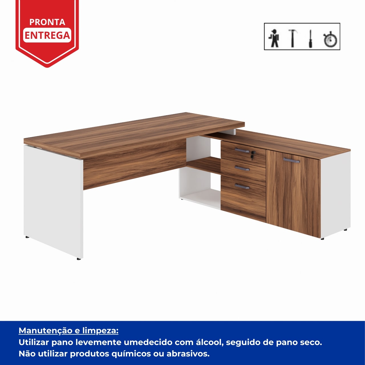 Conteúdo da Embalagem: Mesa Diretorzinha1,90×1,50cm / Gaveteiro Pedestal