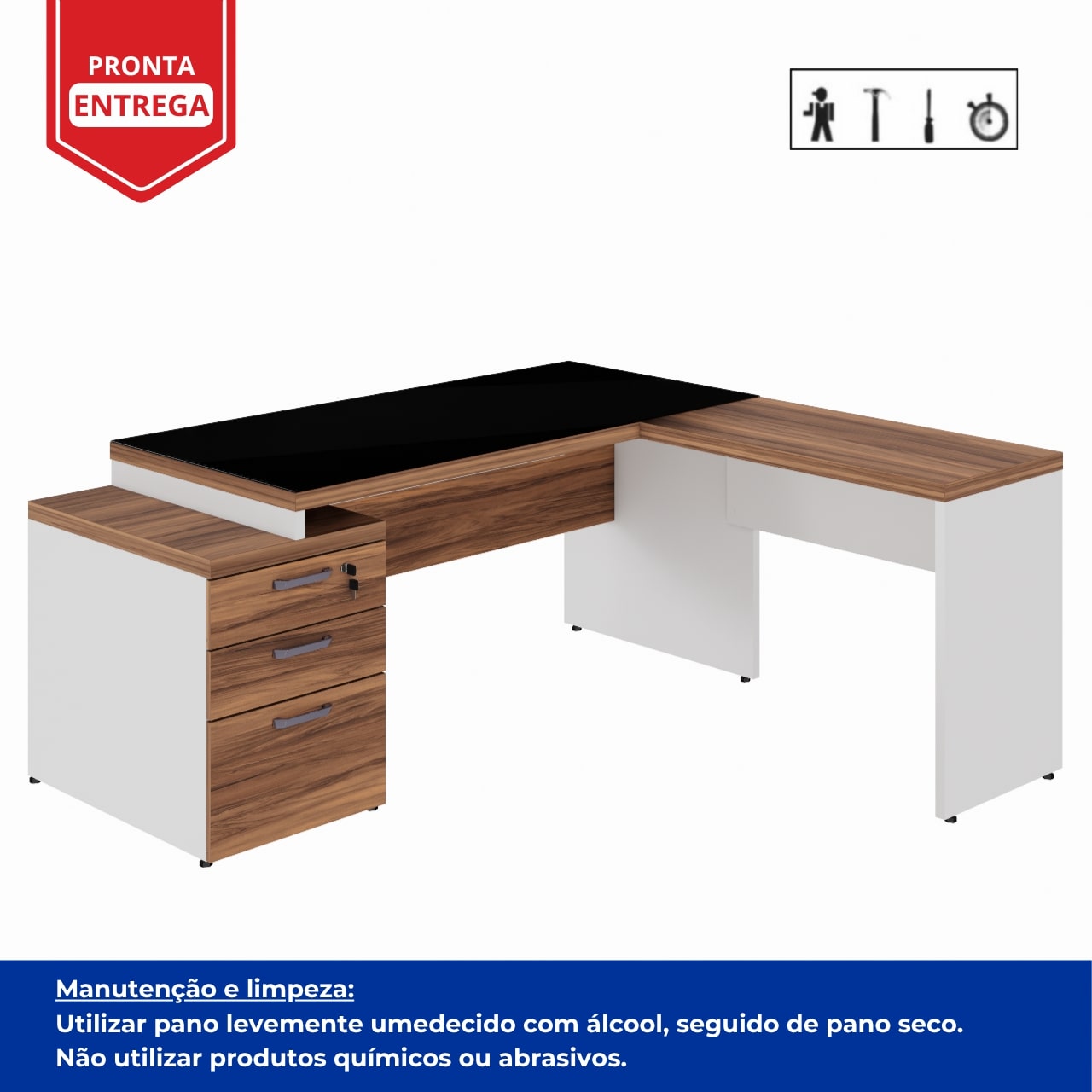 Conteúdo da Embalagem: Mesa Reta 1,92x70cm / Gaveteiro Pedestal